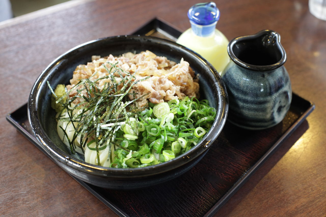 もうひとつ、肉うどんも到着!うどんが見えないくらい薬味とお肉がたっぷり。