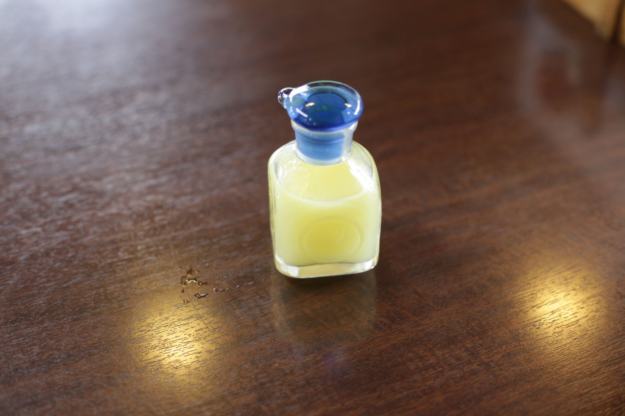 そして、お盆に乗ってる黄色い瓶に、目が留まりました。