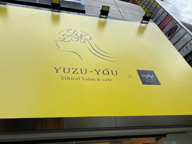 1階での「ゆず油」の体験(無料のヘアケアサロン)と2階のカフェフロアでのホットドリンクだ。
