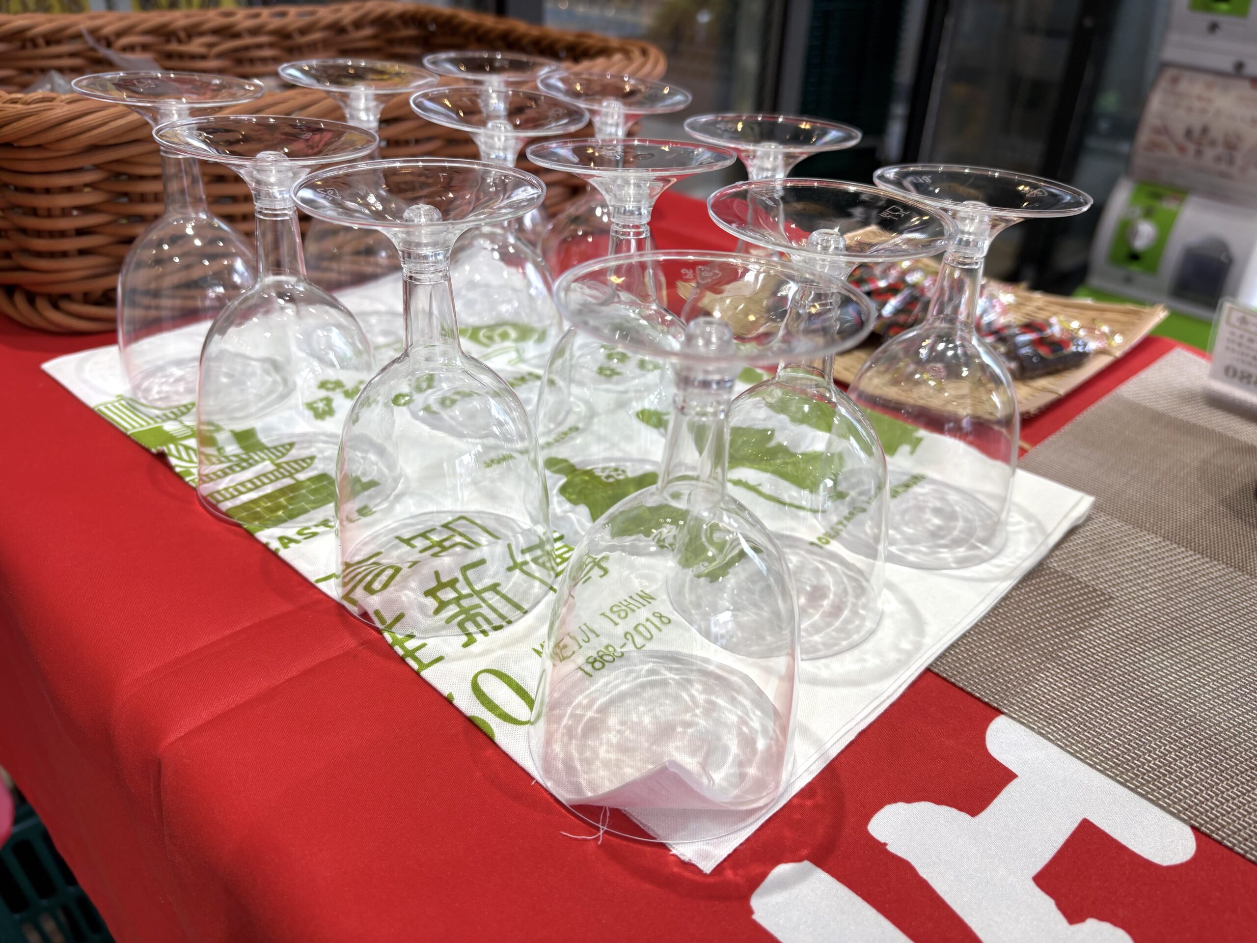 ボトル販売に加えて、解禁日限定企画として、グラスの試飲販売(グラス1杯税込500円、容量90ml/梼原産イノシシカルパス3つ付き)提供。