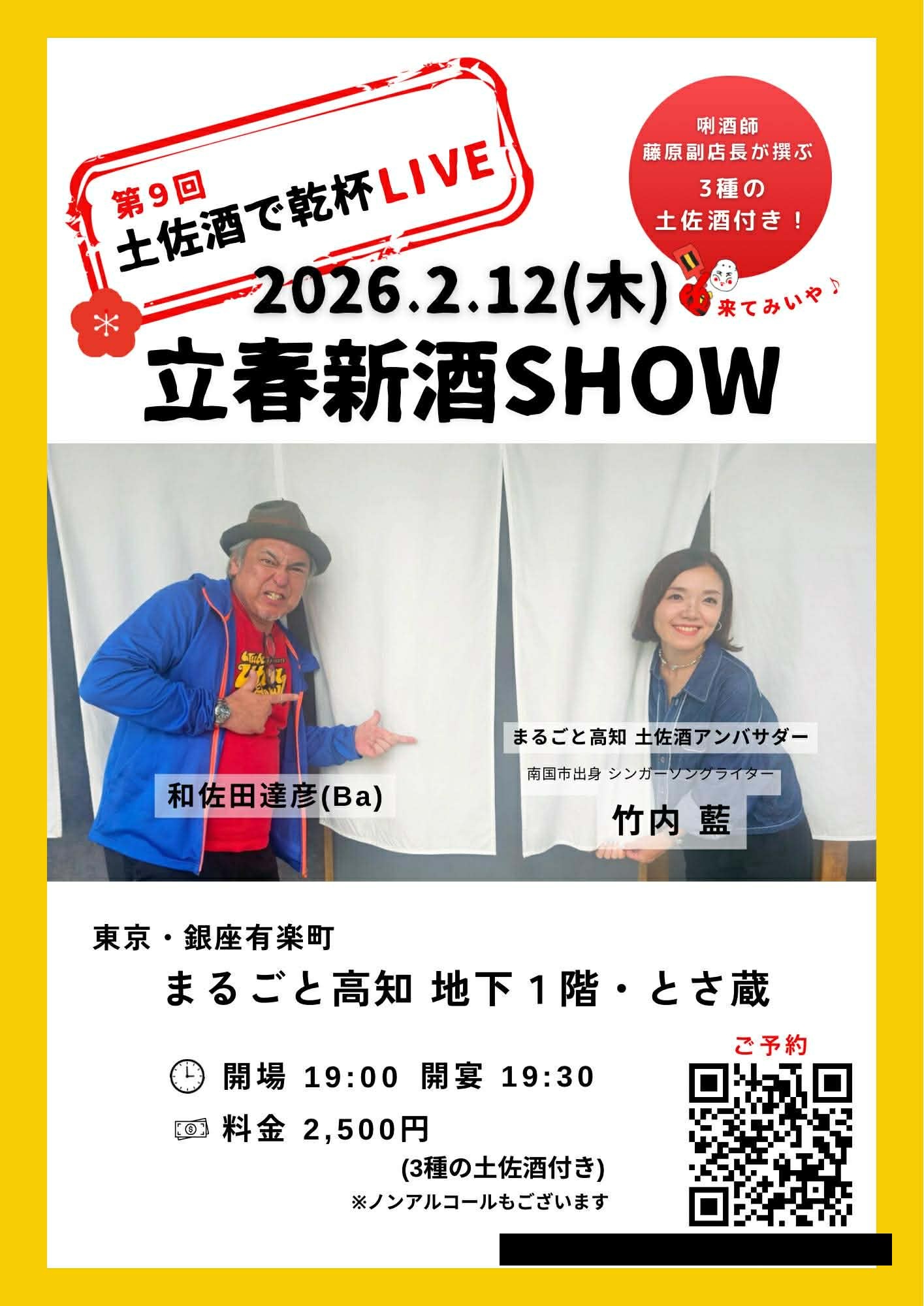 竹内さんの音楽と、まるごと高知厳選のお酒をお愉しにいただけます。